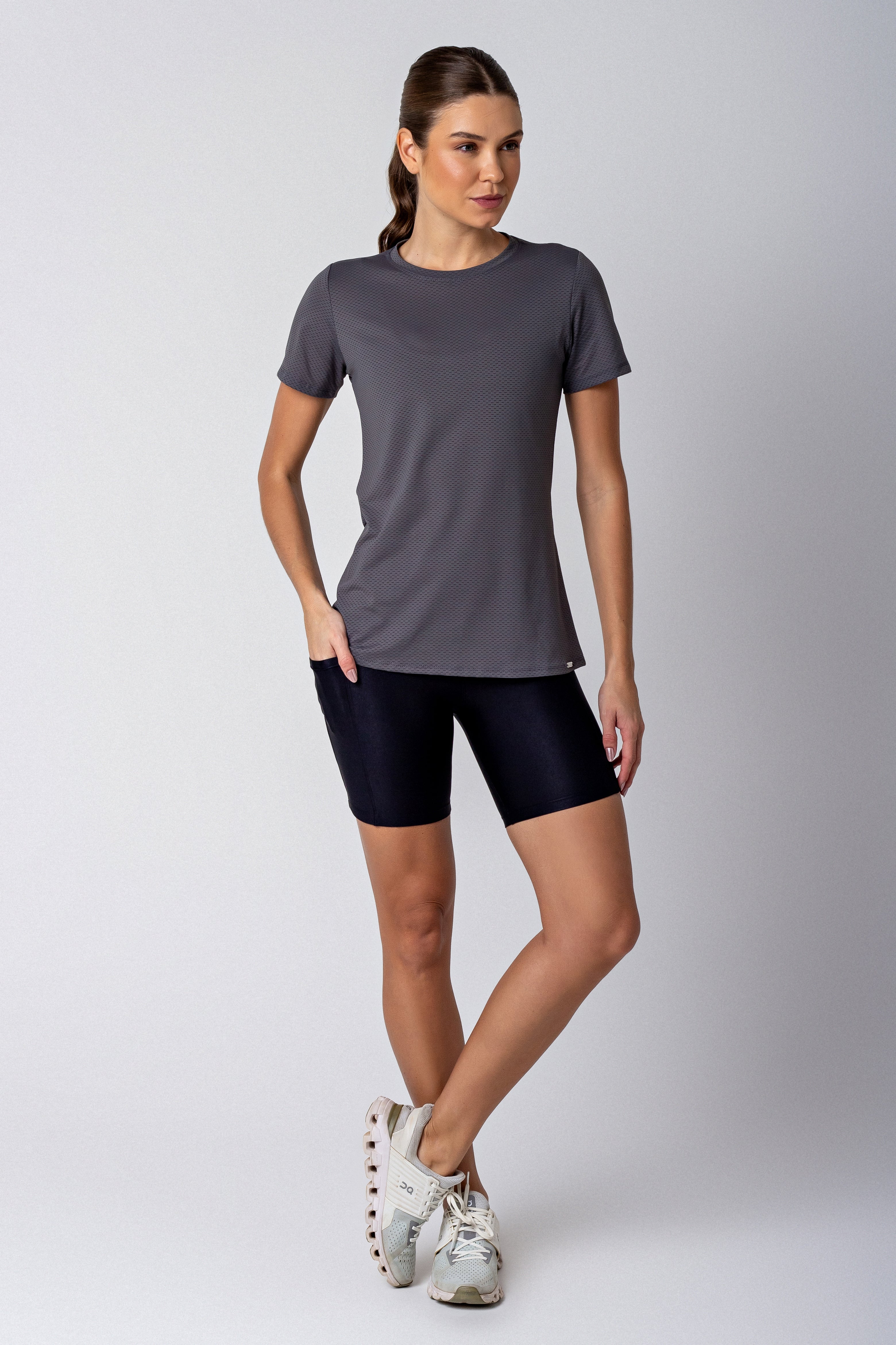 Desenvolvido para ser uma peça que circula do casual ao treino ela foi confeccionado em tecido tecnológico de poliamida, tecido perfeito para o contato com a pele pois possui toque macio e sedoso como a seda, além de transportar a umidade (suor) para fora, o que proporciona controle térmico e uma rápida secagem; possui detalhe vasado nas costas, tecido de tecnológico de poliamida com elastano, design slim, com bom caimento, e toque macio.