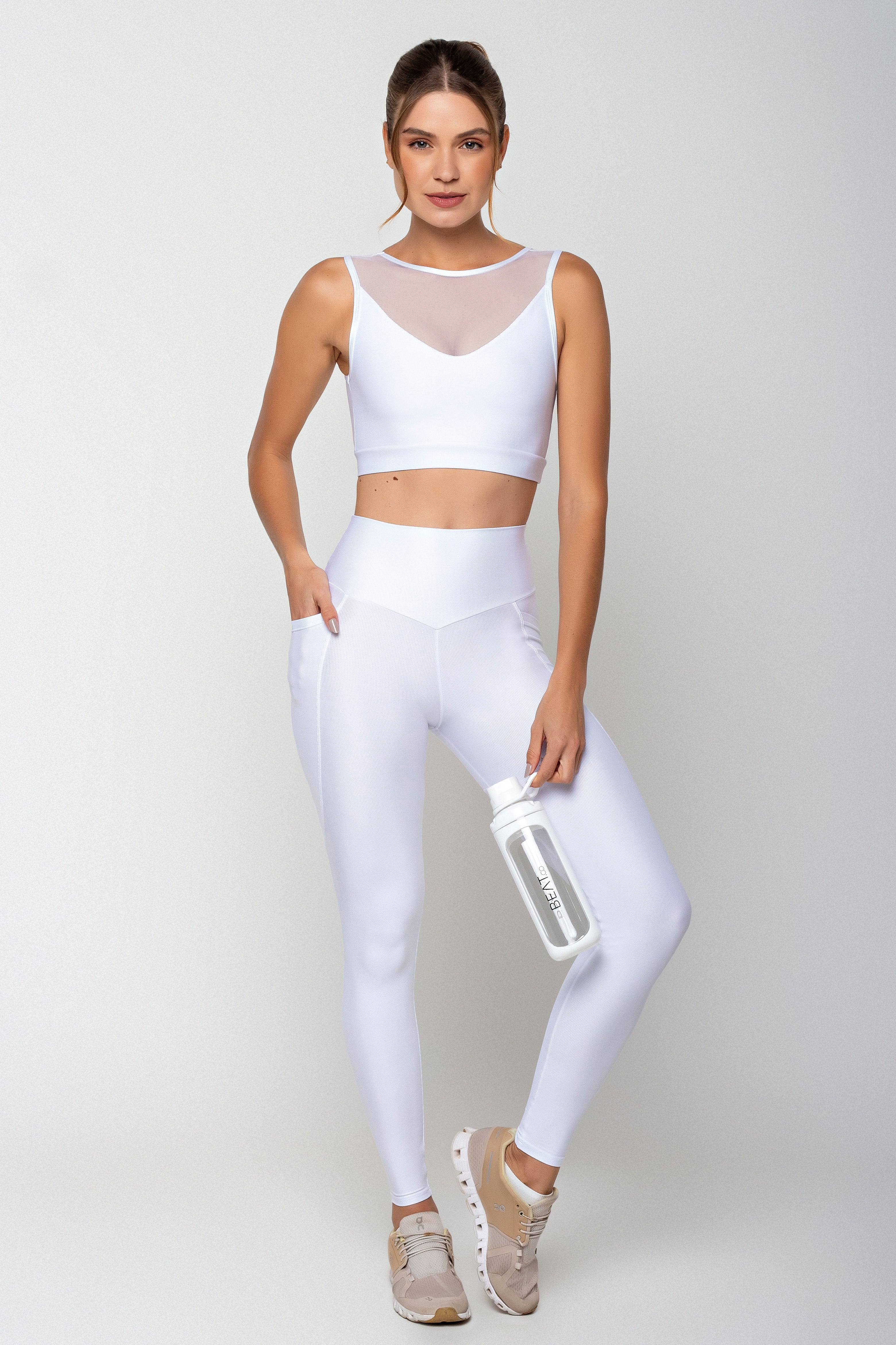 A Calça Calm Branca eleva o conceito de elegância esportiva ao unir alta performance e refinamento visual. Confeccionada em tecido tecnológico Thay, oferece compressão equilibrada, toque confortável e ajuste impecável ao corpo, proporcionando sustentação sem restringir os movimentos.
