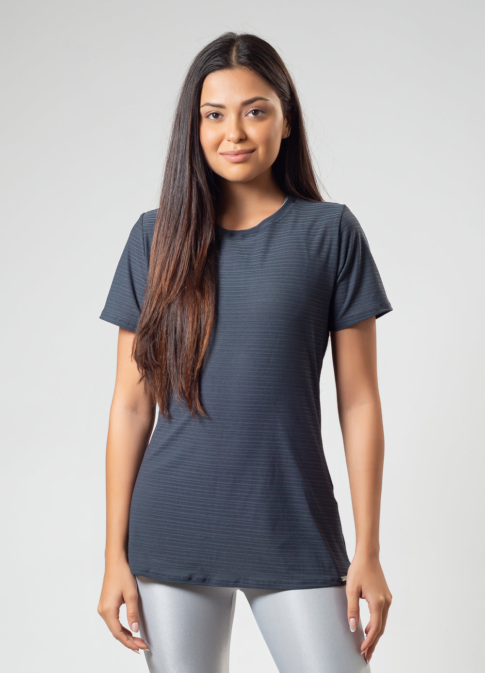 Camisa Alongada Dry Line – Desenvolvido para ser uma peça que circula do casual ao treino ele foi confeccionado em tecido tecnológico de alta resistência, respirável, fluido e de rápida secagem; possui decote composto frontal, manga curta e formato mais alongado.