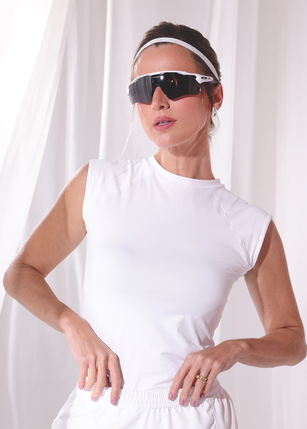 A Regata Raglan Branca oferece proteção UV eficaz sem abrir mão da elegância. Feita em tecido Sun de secagem rápida, proporciona toque frio e macio, mantendo você confortável durante atividades sob o sol.