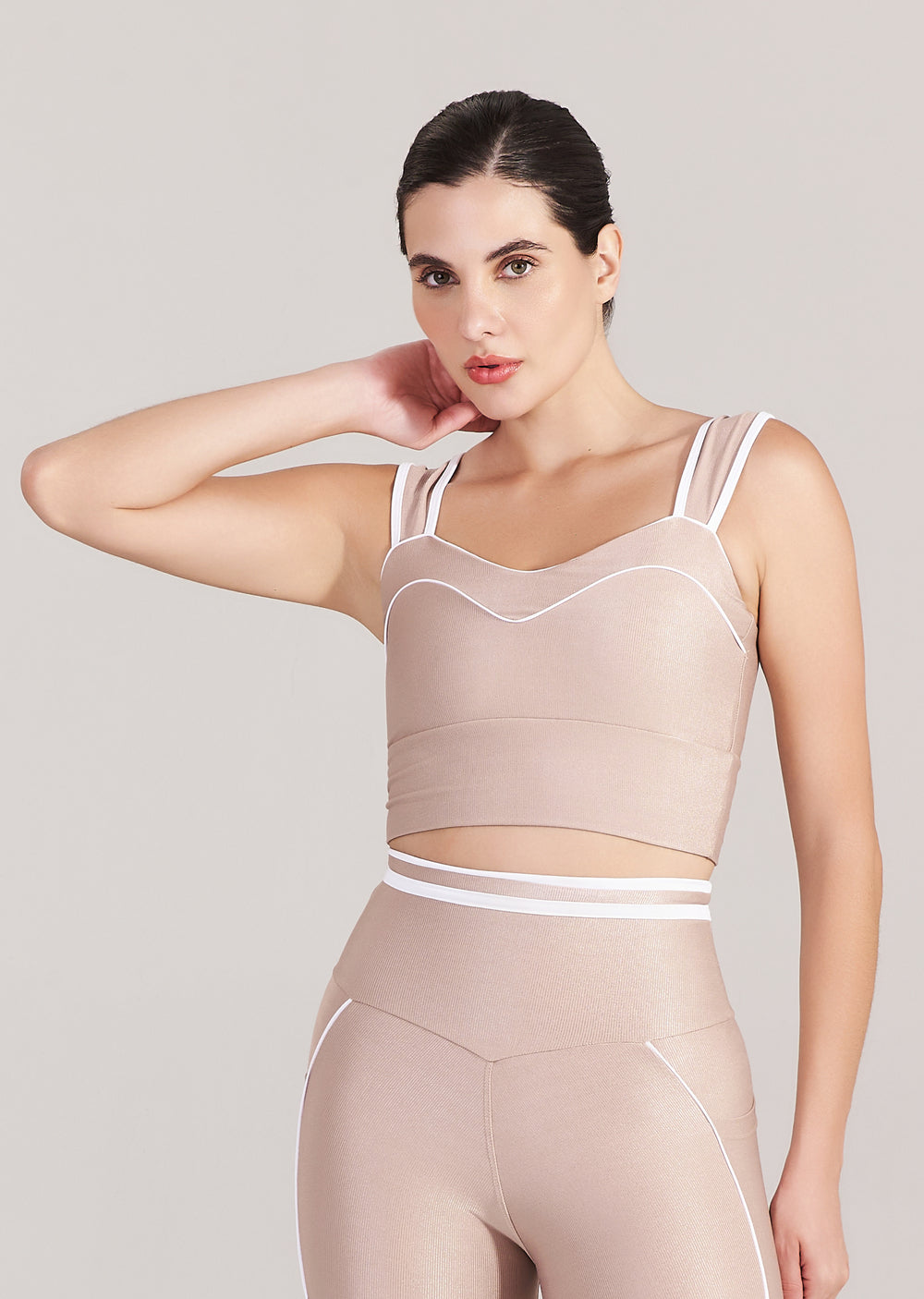 Seu comprimento alongado oferece maior cobertura e estabilidade, modelando a região do abdômen com elegância e permitindo composições versáteis — do treino ao look casual chic. Ideal para quem busca uma peça que transita com naturalidade entre o active e o lifestyle.